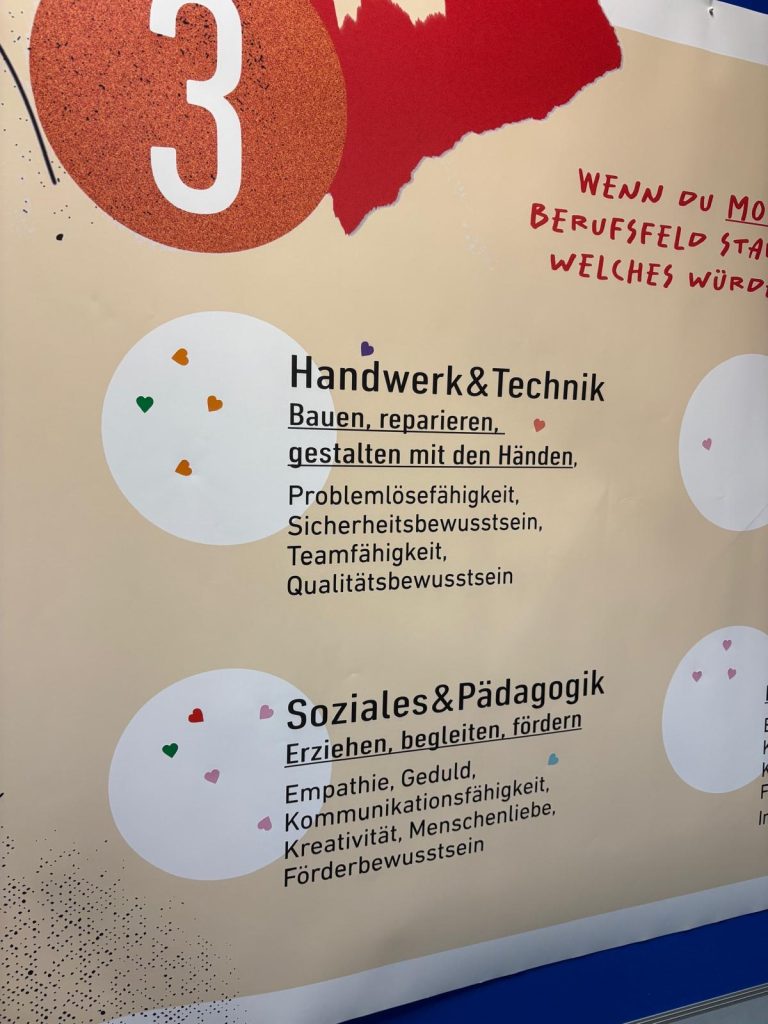 115 Schülerinnen trafen auf 30 Eltern und externe Expert:innen aus ganz unterschiedlichen Berufsfeldern, ohne vorher zu wissen, welchen Beruf ihr Gegenüber ausübt. Durch gezielte Fragen, spontane Gespräche und den Austausch über persönliche Stärken und Lebenswege entstanden spannende Einblicke und ehrliche Begegnungen.