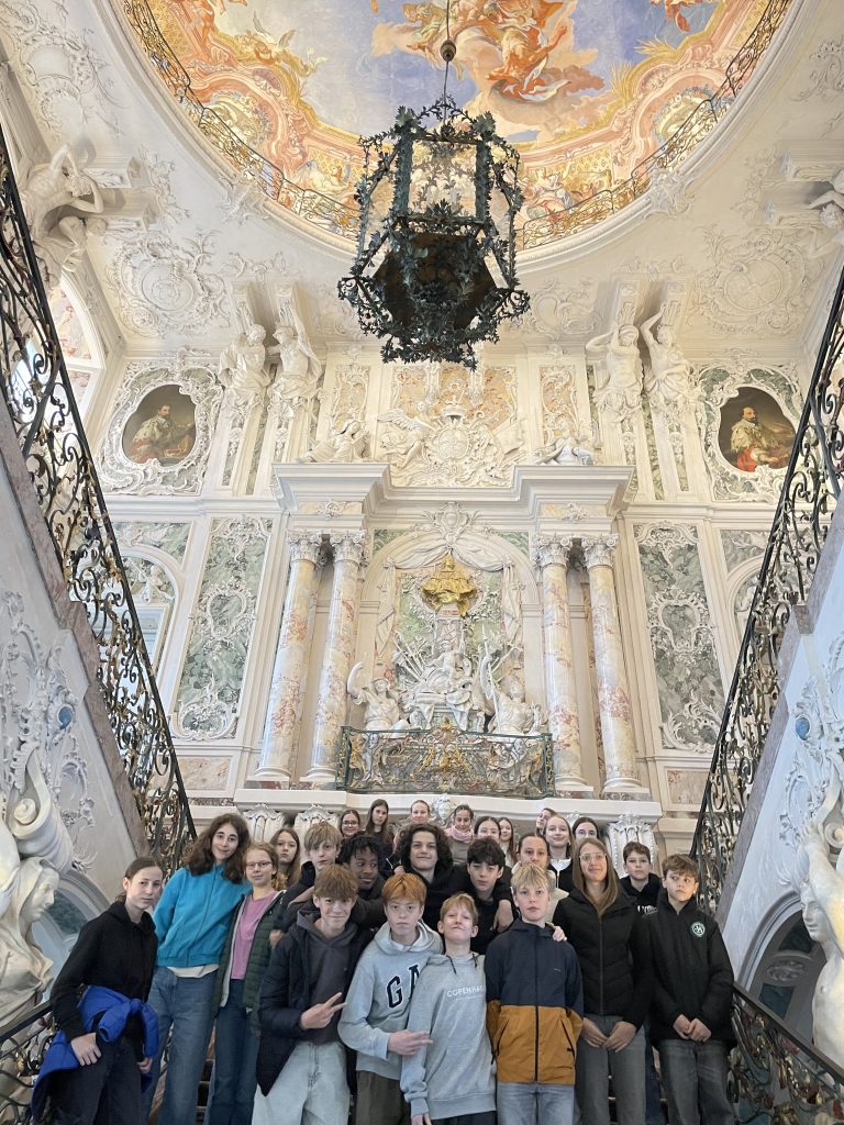 Wir, die Klasse 8b, beschäftigen uns im Geschichtsunterricht bei Frau Kutsch nun mit dem Thema Neuzeit und als Einstieg haben wir uns das Schloss Augustusburg in Brühl am 7.11.2025 besucht. Es war um einiges beeindruckender, als manche zu Beginn gedacht hatten.