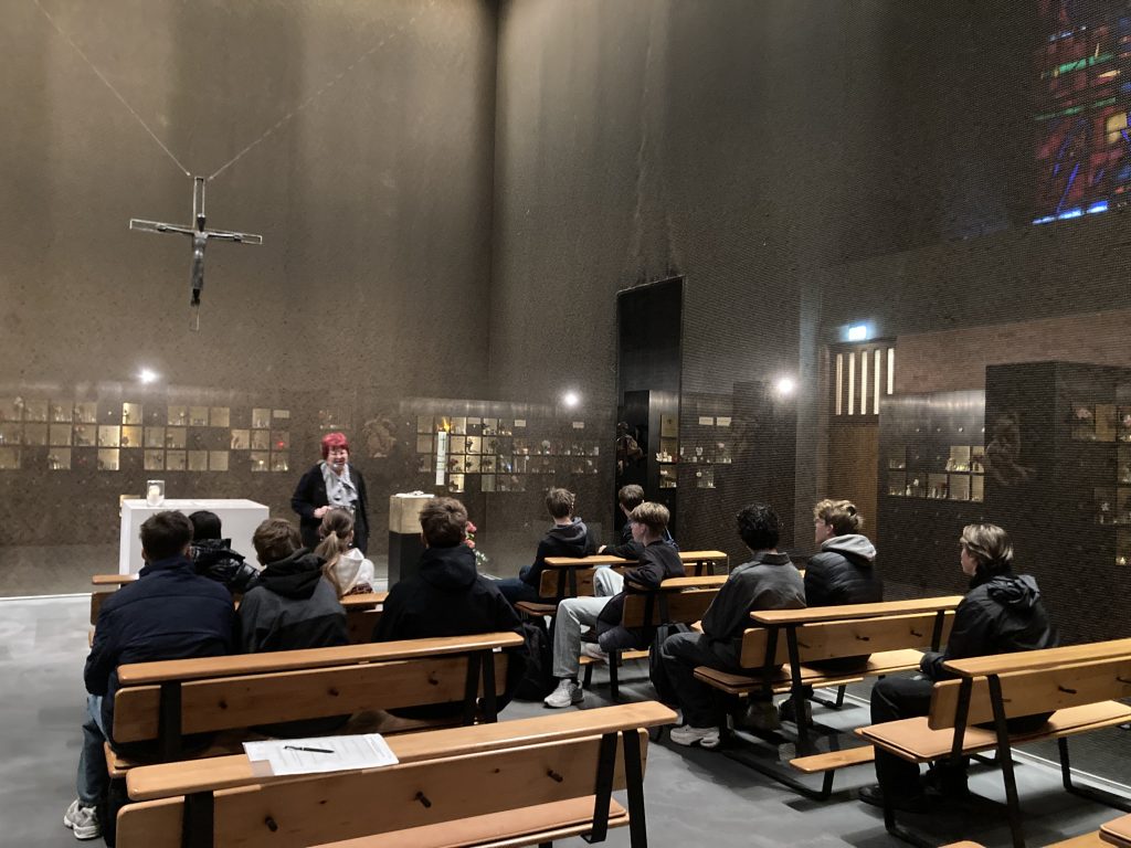 Am 14. November 2025 besuchte der katholische Religionskurs der Klassen 10a und 10b die Grabeskirche St. Bartholomäus in Köln-Bickendorf. Die Kirche ist ein sogenanntes Kolumbarium, also eine Urnengrabstätte innerhalb einer Kirche. Begleitet wurden wir von unserer Lehrerin Frau Geibel. Frau Sänger-Strüder, die seit 5 Jahren hauptamtlich in der Grabeskirche arbeitet, führte uns durch diesen besonderen Ort und stellte sich all unseren Fragen.