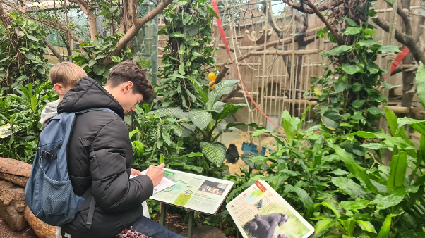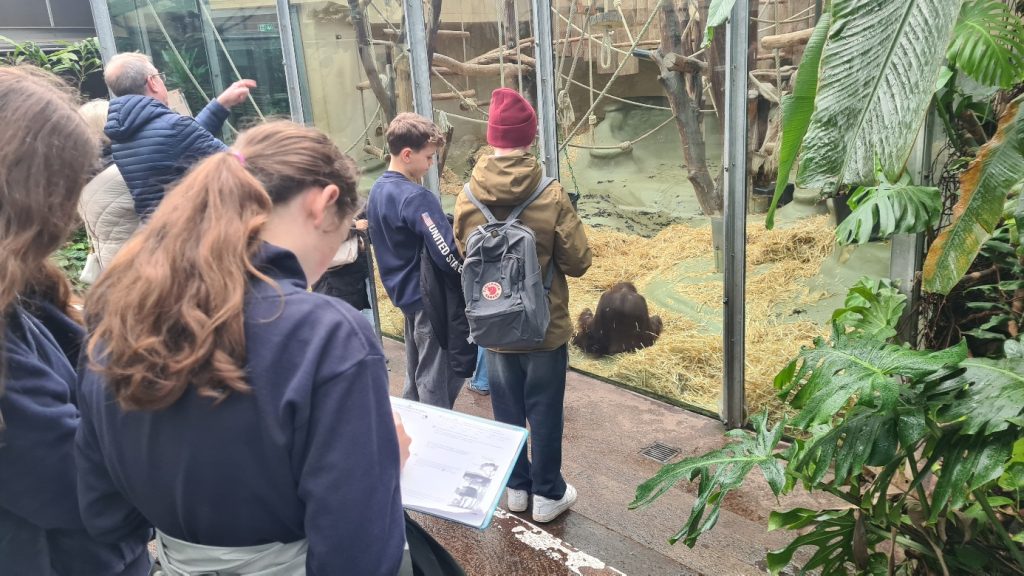 Am 9.12. tauschte die 8b mit ihrem Biolehrer Herrn Westermann den NW-Container gegen die Zooschule. Nach einer kurzen theoretischen Einführung in die Besonderheiten des Ökosystems Regenwald und einer Führung zu ausgewählten Tieren dieser Regionen wie Tapir, Okapi, Affen und Menschenaffen, bearbeiteten die Schülerinnen und Schüler kleine Forschungsaufträge in den denen sie ihr ökologisches Wissen z.B. über Anpassung und ökologische Nischen anwenden konnten.