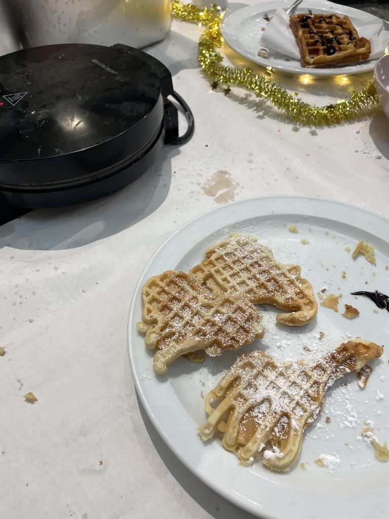 Für das leibliche Wohl war bestens gesorgt: Der Duft von frisch gebackenen Waffeln erfüllte den Raum, dazu gab es Kekse, Mandarinen und Kinderpunsch. Ihr hattet die Gelegenheit, euch bei einer kleinen Stärkung in angenehmer Atmosphäre zu unterhalten und gemeinsam in vorweihnachtliche Stimmung zu kommen.