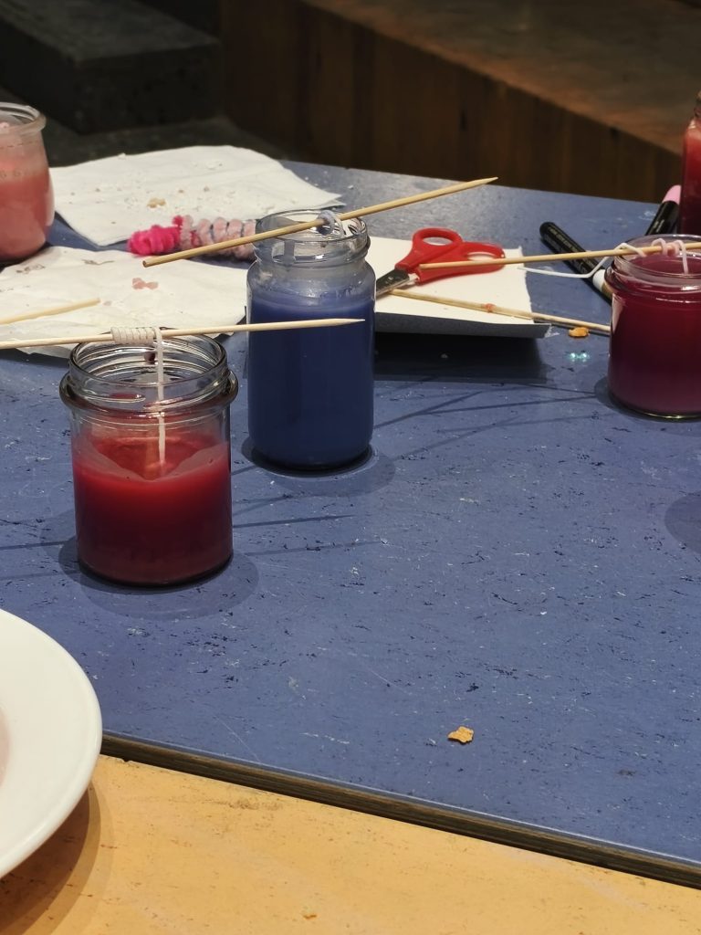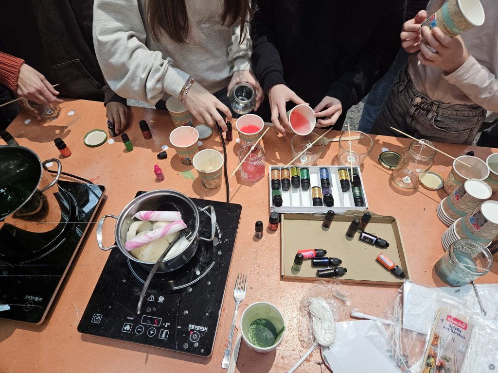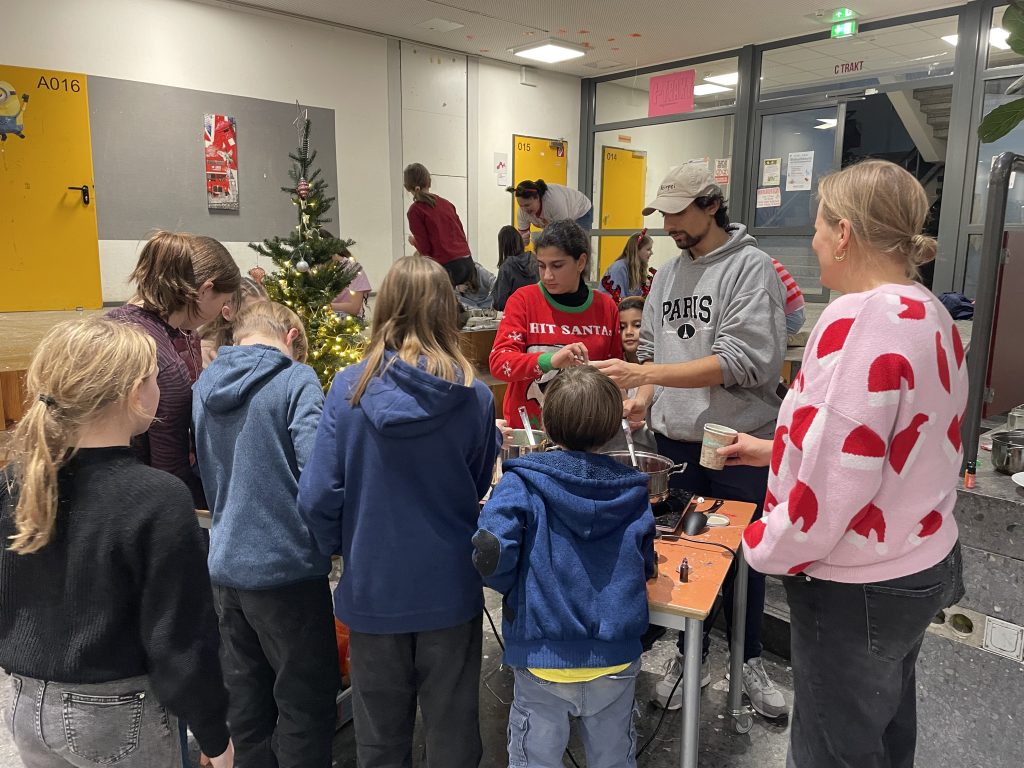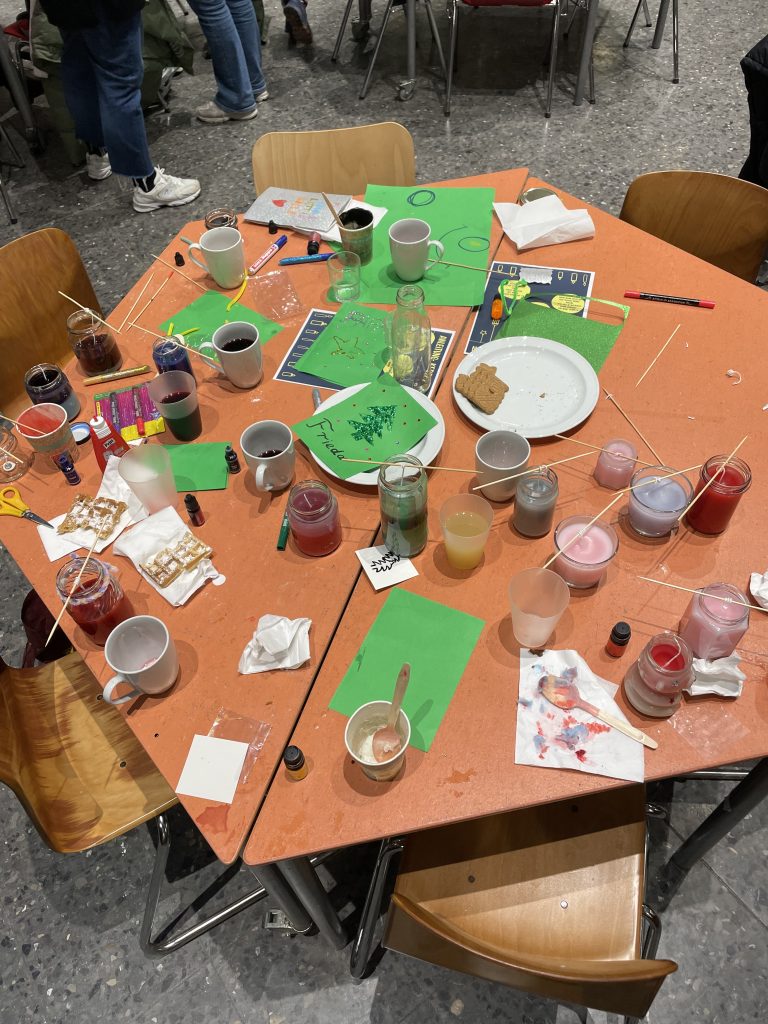 An verschiedenen Stationen konntet ihr eurer Kreativität freien Lauf lassen. Beim Kerzengießen entstanden viele schöne und individuelle Kerzen, wobei ihr aus zahlreichen Düften und bunten Farben auswählen konntet. Ebenso beliebt war das Kartenbasteln, bei dem mit Glitzer, Pappe und funkelnden Steinchen liebevoll gestaltete Weihnachtskarten gefertigt wurden.