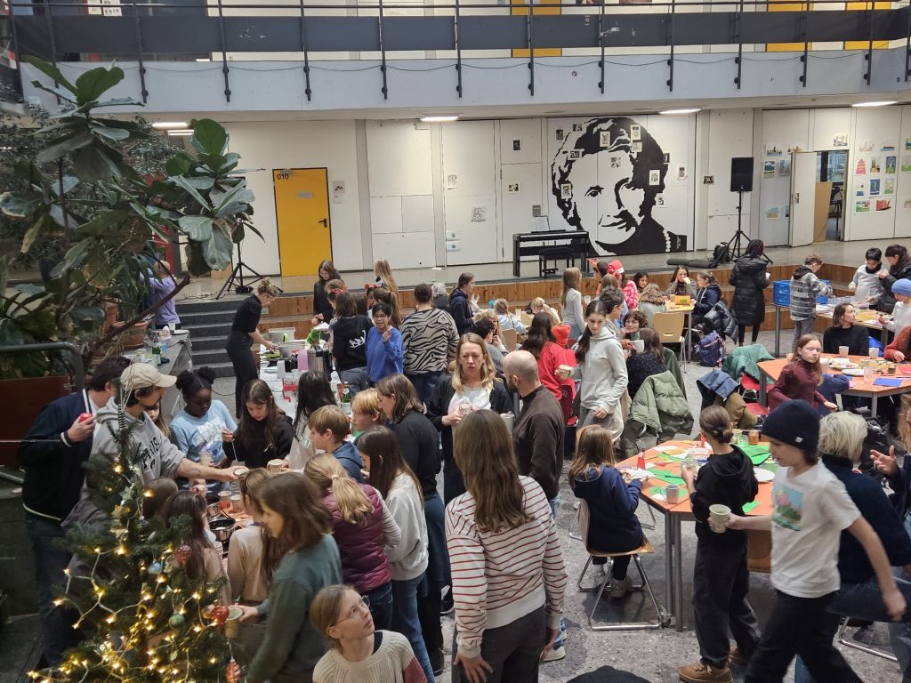 Am 2. Dezember 2025 fand unsere diesjährige Weihnachtsaktion des Ganztags statt. Ab 14 Uhr füllte sich das Atrium nach und nach mit vielen Schüler:innen, Eltern und Lehrer:innen, die gemeinsam einen gemütlichen Bastelnachmittag erleben wollten.