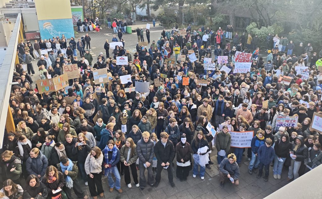 Am 4. Dezember um 12:15 Uhr fand auf dem Schulhof des Montessori-Gymnasiums ein eindrucksvoller Protest der Schulgemeinschaft statt. Schülerinnen und…